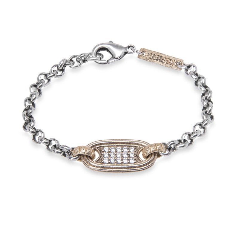 WB421X Pulsera Plata de Palo mujer chapada en Plata 925 con pieza de bronce y circonitas blancas cierre de mosquetón