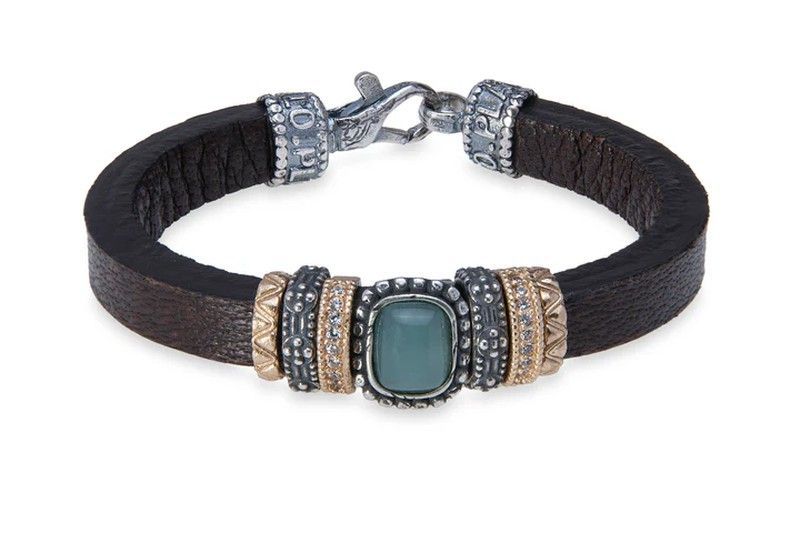 WB445X Pulsera Plata de Palo mujer de cuero con turquesa reconstituida colección Riven