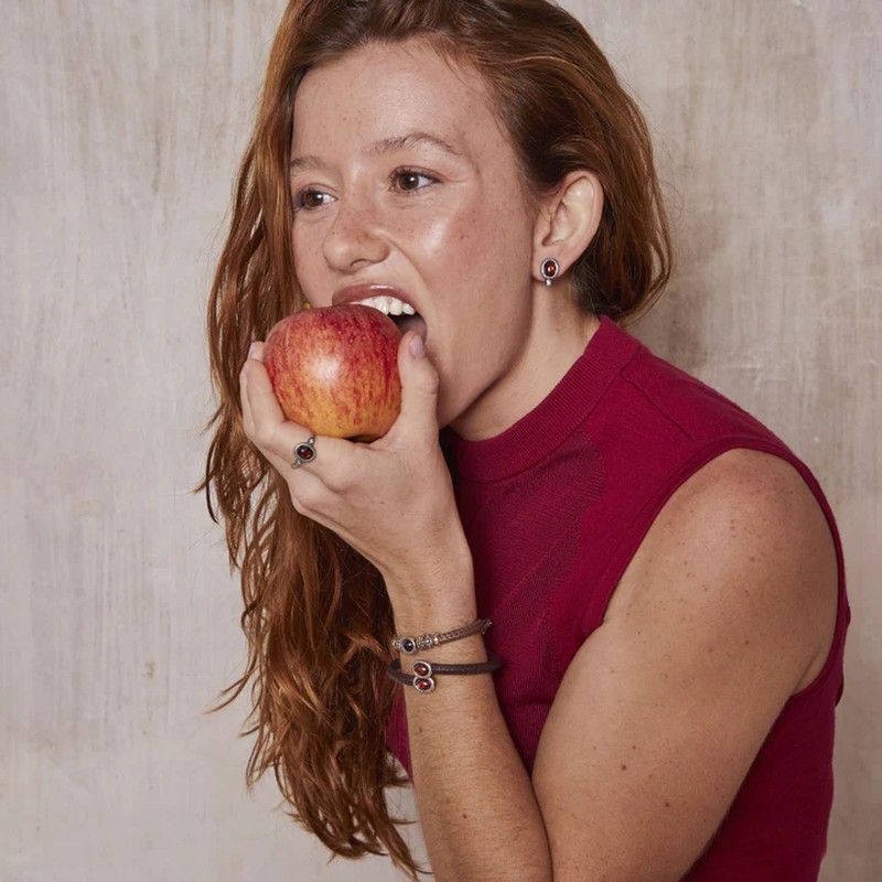 WB487X Pulsera Rita PLATA DE PALO de mujer detalles en plata bronce y piedra oval granate