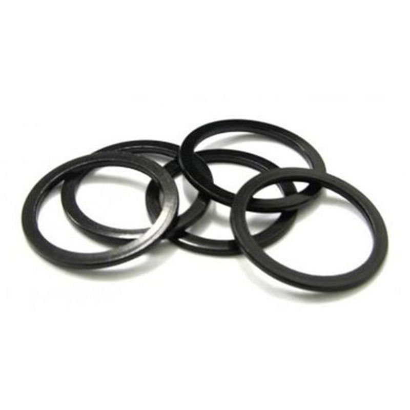 Juego de 5 arandelas negras de goma para dirección de bicicleta de 1 1/8 pulgadas y 2.5 mm de grosor. Ideales para ajustar y proteger el sistema de dirección, garantizando un montaje preciso y duradero. Perfectas para ciclistas que buscan mantener su bicicleta en óptimas condiciones. Fáciles de instalar y compatibles con componentes estándar.