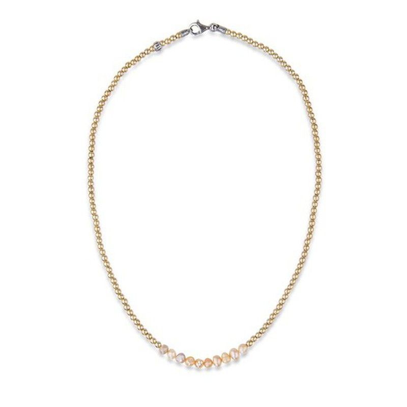 Collar WN194X de la colección Esperanza, ideal para mujeres que buscan elegancia y sencillez. Fabricado con cadena de metal dorado y perlas naturales de tono rosa claro, con cierre plateado. Perfecto para looks diarios o eventos especiales, aporta un toque sofisticado y femenino a cualquier atuendo.