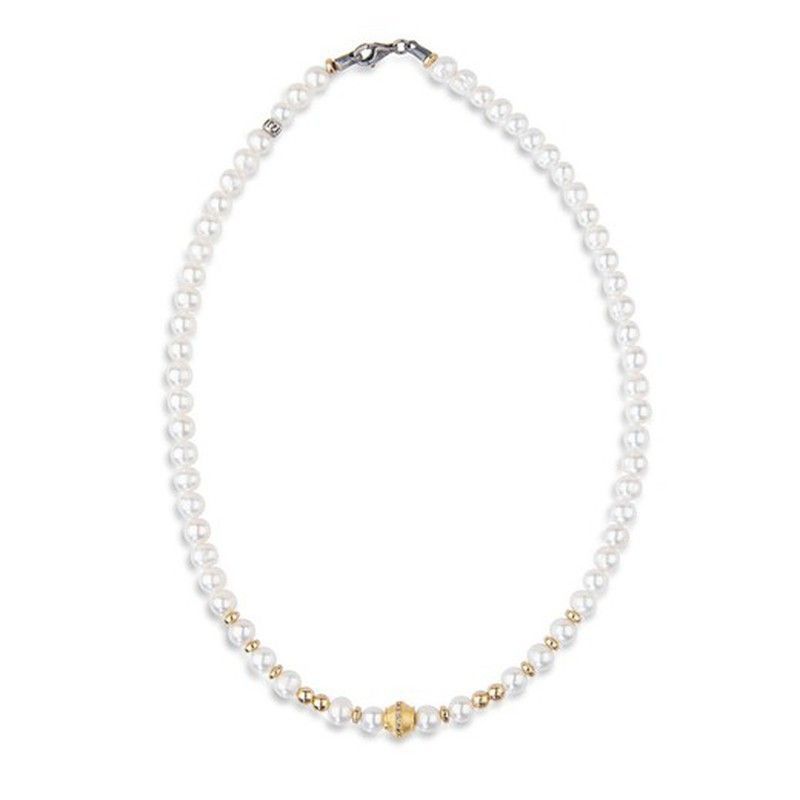 Collar Iara de perlas blancas para mujer, con detalles dorados y cierre metálico plateado. Diseño elegante y clásico, ideal para looks formales o diarios. Fabricado con perlas de calidad y acabados metálicos que aportan sofisticación. Perfecto para regalar o lucir en ocasiones especiales.