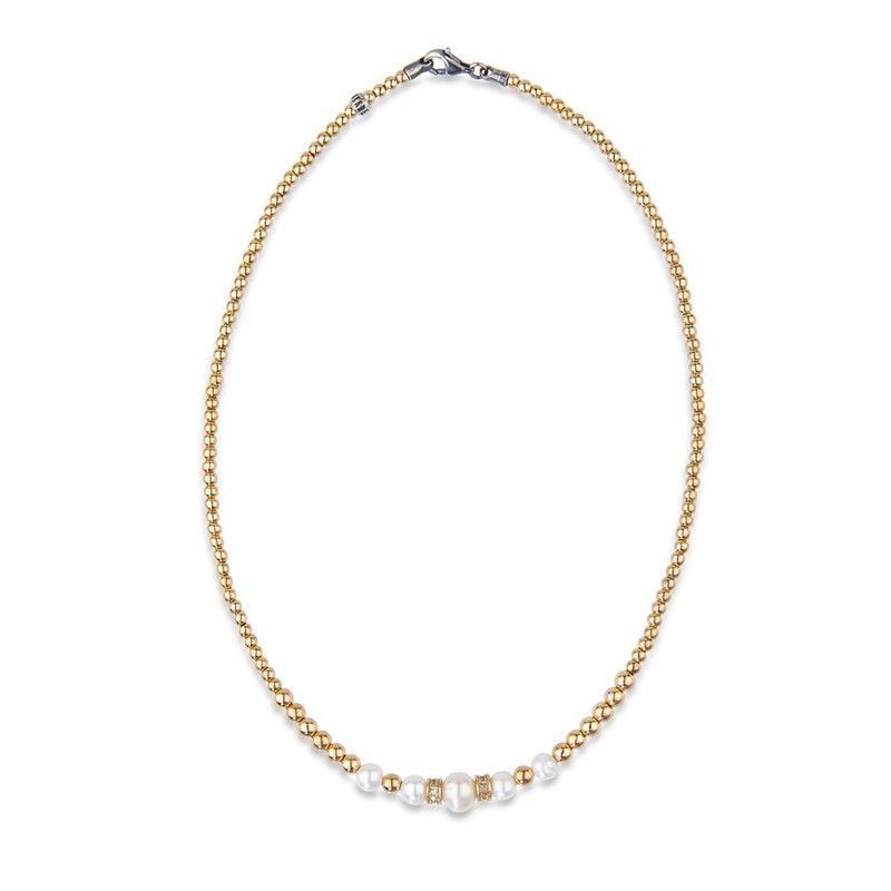 Collar Lalita de la colección PLATA DE PALO, ideal para mujeres que buscan elegancia y sofisticación. Con cadena de eslabones dorados y detalles centrales de perlas blancas y hematites, este collar combina estilo y calidad. Perfecto para looks diarios o ocasiones especiales, añade un toque de distinción a tu atuendo.