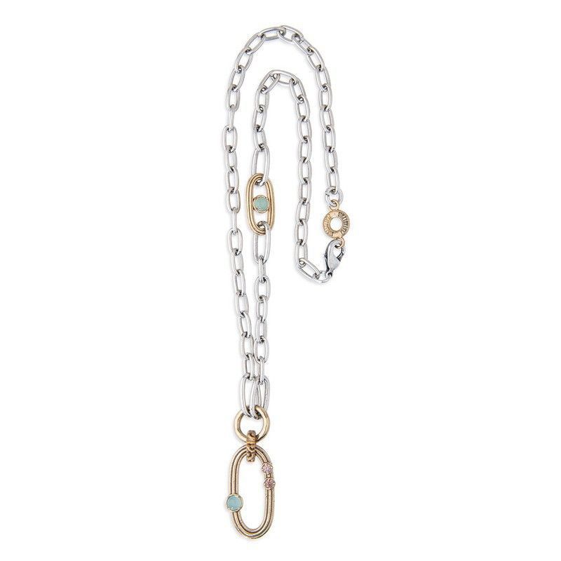 Collar WN218X modelo Huno para mujer, con cadena de eslabones en acero inoxidable plateado y detalles en tono dorado. Incluye cabujón de calcedonia y circonitas marrones, ideal para looks elegantes y sofisticados. Diseño minimalista y versátil, perfecto para combinar con cualquier atuendo diario o de ocasión.