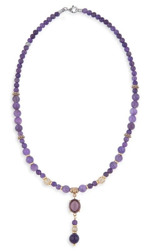 Collar WN231A de la colección Alime, ideal para mujeres que buscan elegancia y sofisticación. Fabricado con cuentas de amatista morada, detalles en bronce y circonitas, con un pendiente central ovalado que aporta un toque de distinción. Diseño refinado y versátil para complementar looks formales o semi-formales. Perfecto para ocasiones especiales o