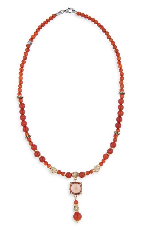 Collar WN231O de la colección Mina, ideal para mujeres que buscan vitalidad y energía. Fabricado en bronce con cuentas de cornalina naranja y detalles de circonitas, presenta un diseño elegante con pendiente central cuadrado y cierre seguro. Perfecto para looks sofisticados y diarios con toque de estilo.