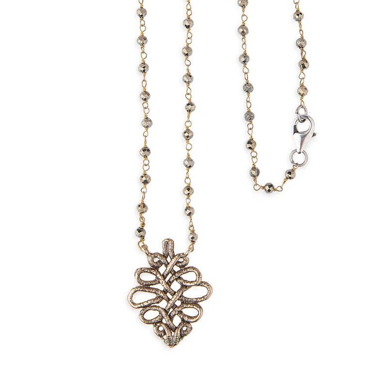 WN240X Collar Pirita PLATA DE PALO de mujer interesante rosario colgante con cenefas de bronce super original