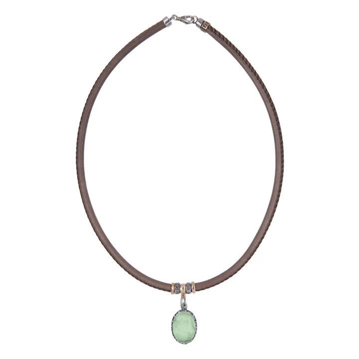 WN262X Collar Plata de Palo mujer de cuero color visón y colgante con piedra prehnita