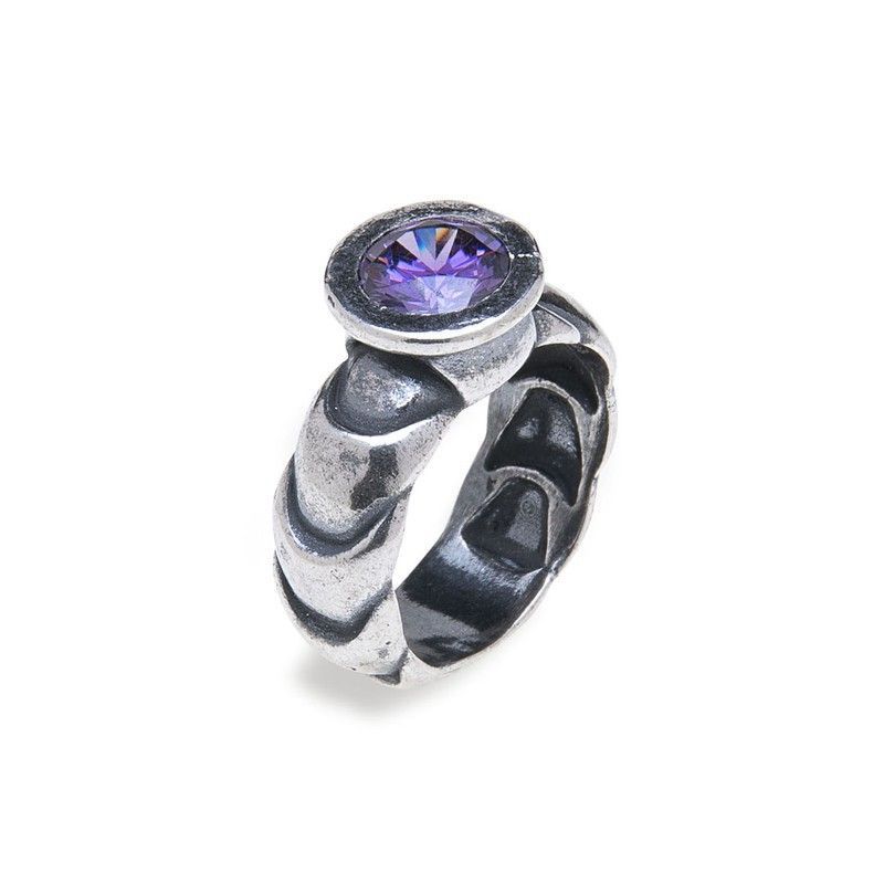 Anillo WR082M para mujer en plata de ley con piedra central de amatista de color violeta intenso. Diseño elegante y sofisticado con banda texturizada en forma de ondas, acabado mate que aporta un toque moderno y distintivo. Ideal para quienes buscan joyería única y de calidad, perfecto como regalo o para complementar cualquier look con estilo.