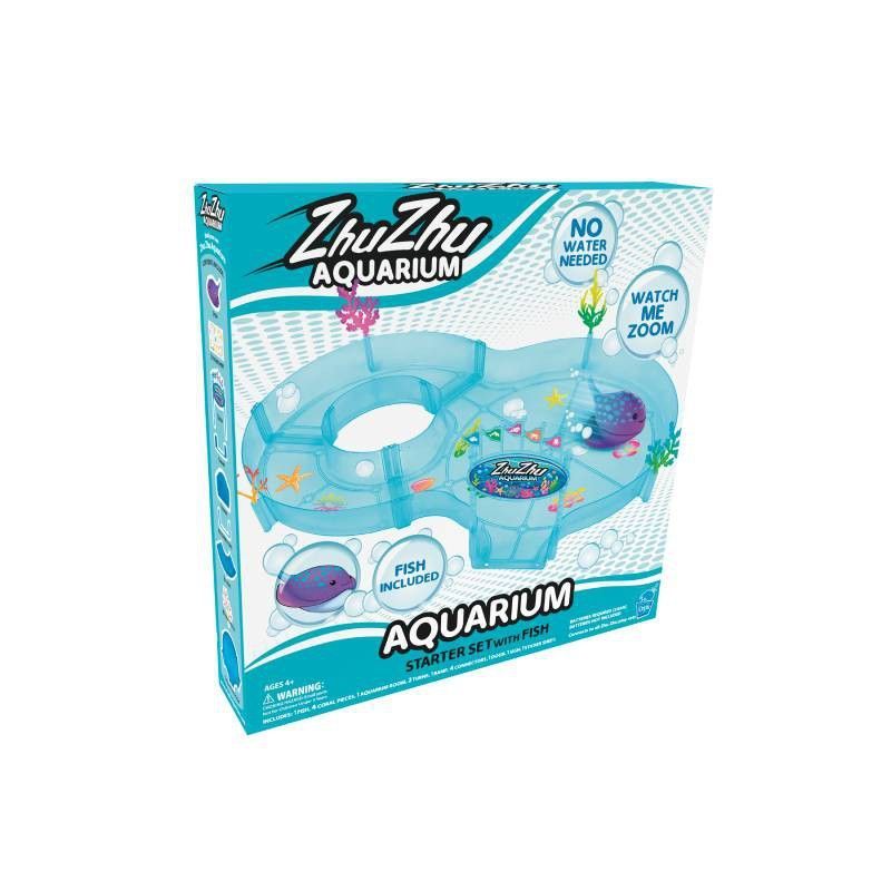 Juego ZHU ZHU Acuario Starter Set con pez, ideal para niños que aman los animales y los juegos interactivos. Incluye un acuario con accesorios flotantes y un pez electrónico que se mueve sin necesidad de baterías. Diseño atractivo en tonos azules y verdes, perfecto para fomentar la imaginación y el juego creativo. Embalaje de cartón con ilustracion