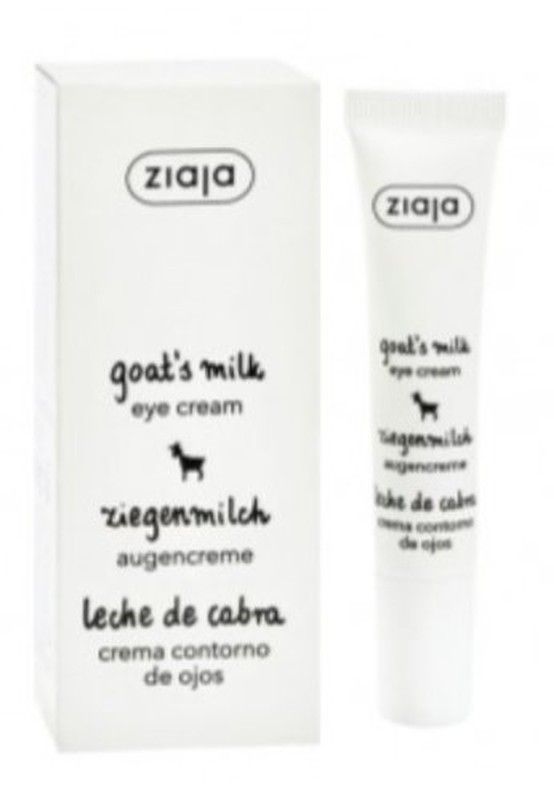 Crema contorno de ojos Ziaja con leche de cabra, formulada para reducir arrugas y revitalizar la zona delicada del contorno ocular. Ideal para pieles sensibles y maduras. Presentada en tubo blanco con diseño limpio y minimalista, acompañada de su caja rectangular. Su fórmula natural ayuda a hidratar y suavizar la piel del rostro. Perfecta para ruti