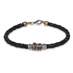 MB219X Pulsera PLATA DE PALO de cuero marrón, plata de ley 925 y bronce colección Calindra